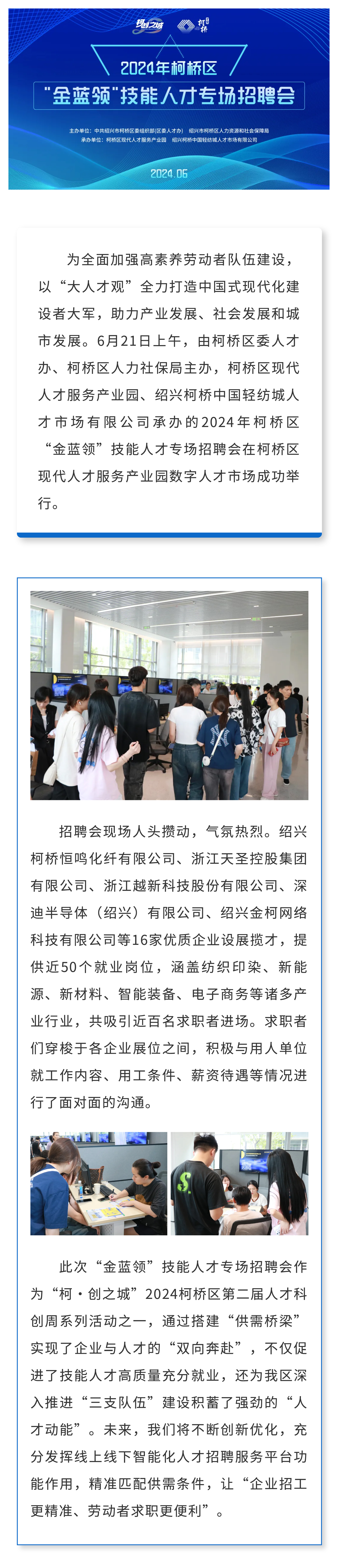 【活动回顾】2024年柯桥区“金蓝领”技能人才专场招聘会成功举行!