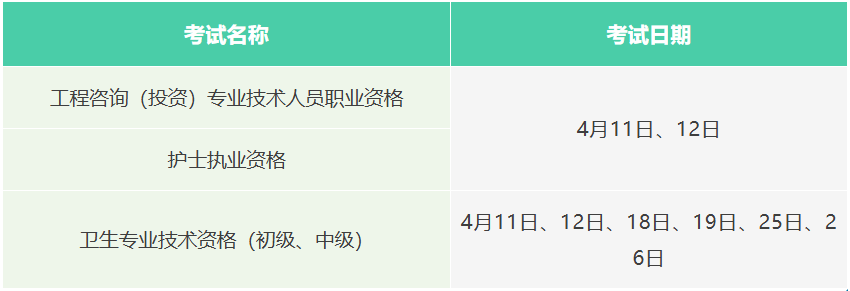 4月专业技术人员职业资格考试