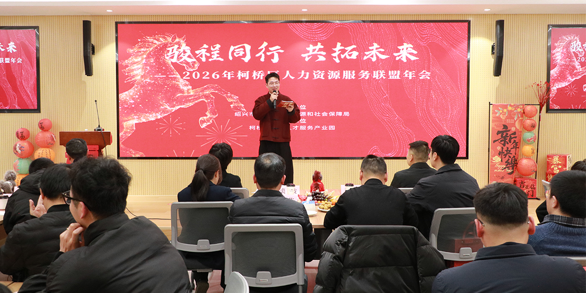 2月6日下午,“骏程同行 共拓未来”2026年柯桥区人力资源服务联盟年会在柯桥区现代人才服务产业园举行。区内人力资源机构负责人、企业负责人、企业HR及人力资源从业者、联盟成员单位负责人等共叙情谊、共话发展、共迎新春。