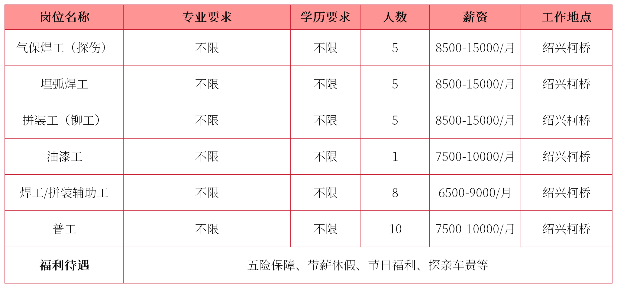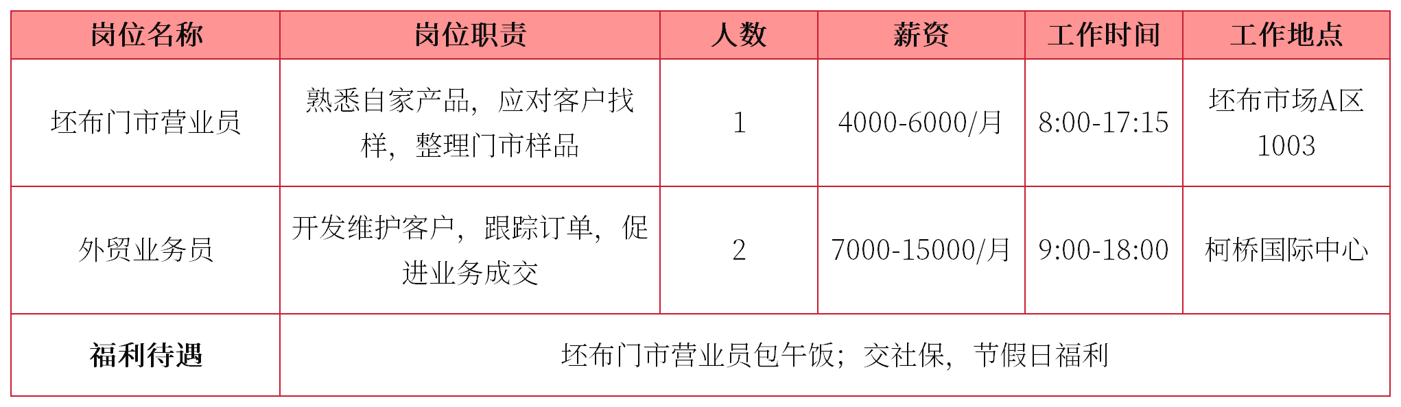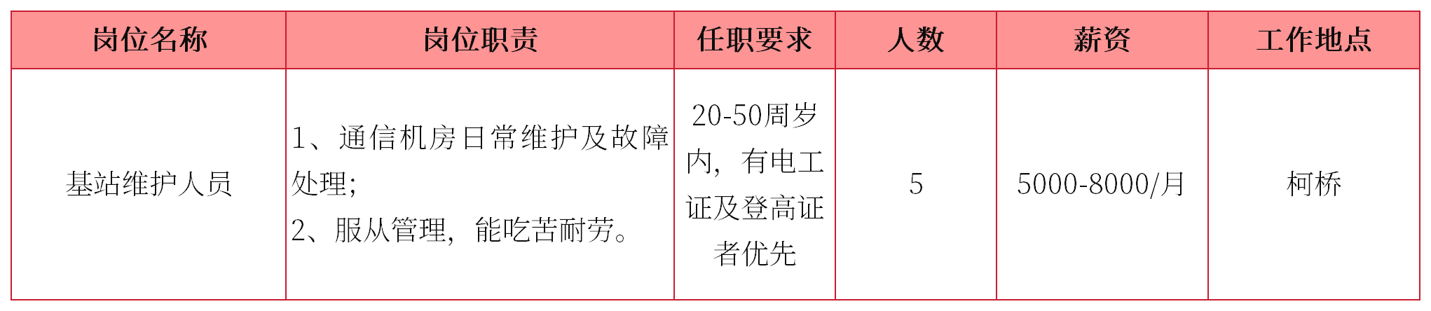 免责声明:以上内容为代发招聘信息,对用户发布的信息本身不做任何担保,造成的影响亦不承担任何责任。具体信息请以实际为准,如有问题可联系后台反馈,请勿相信任何形式的收费(如中介费、押金等)。