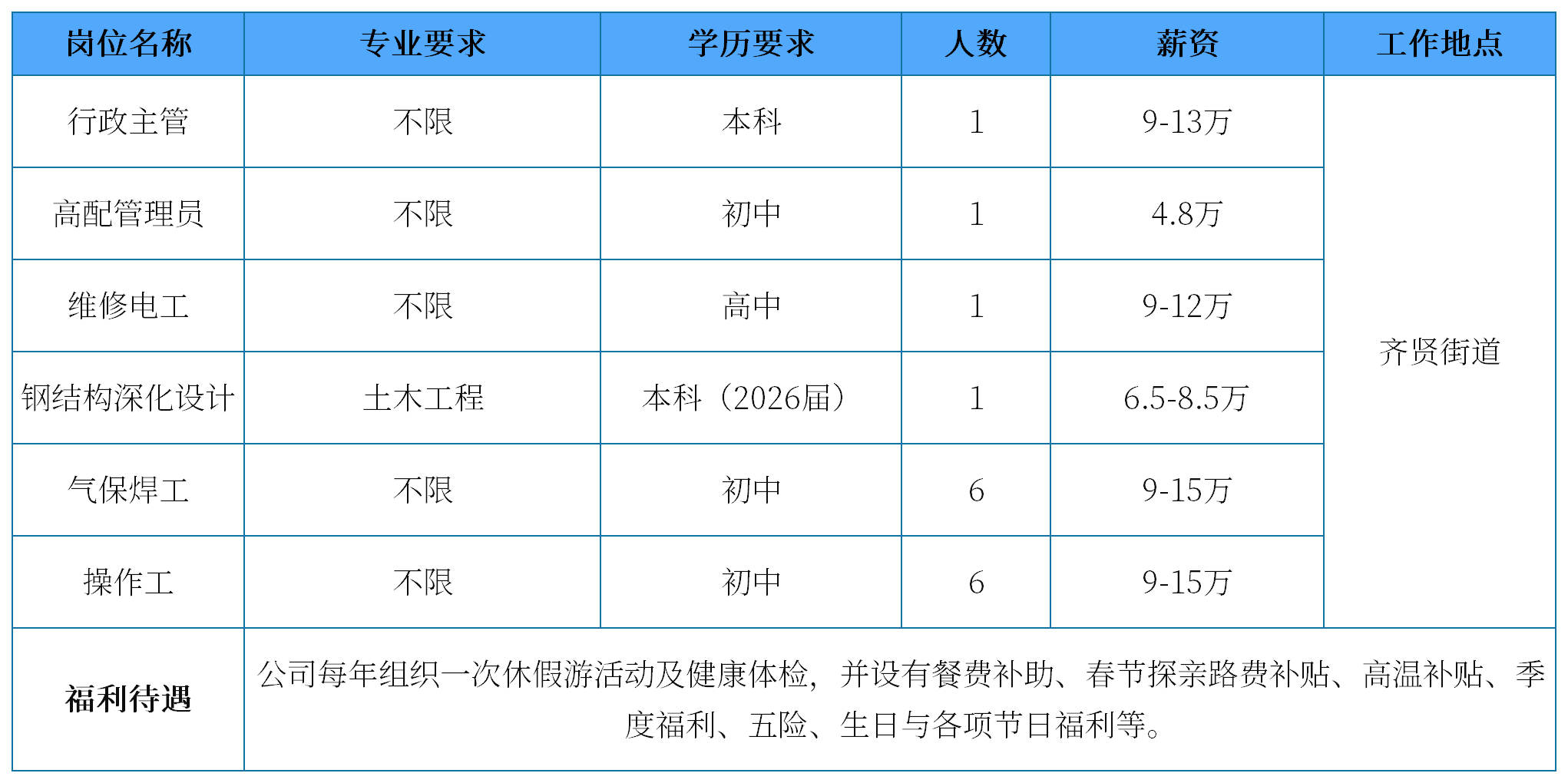 招聘联系人:何老师