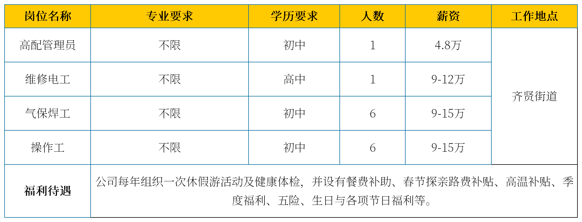 招聘联系人:蔡女士