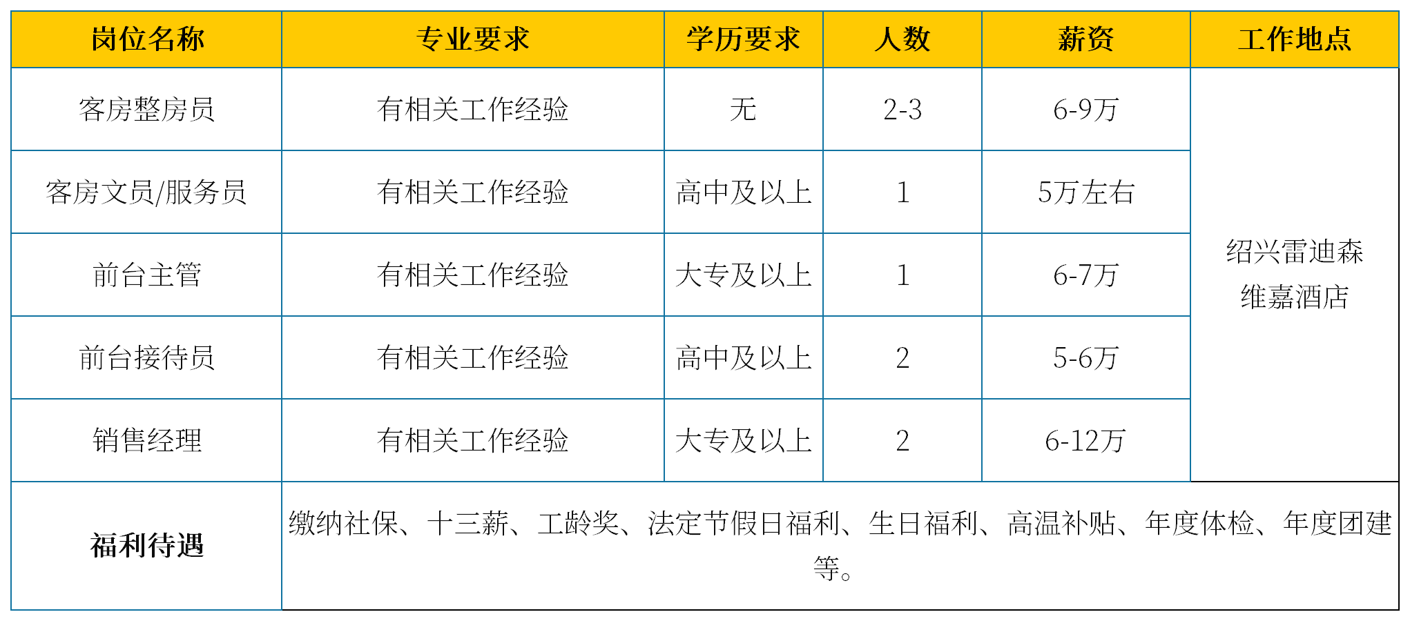 招聘联系电话:0575-85291081