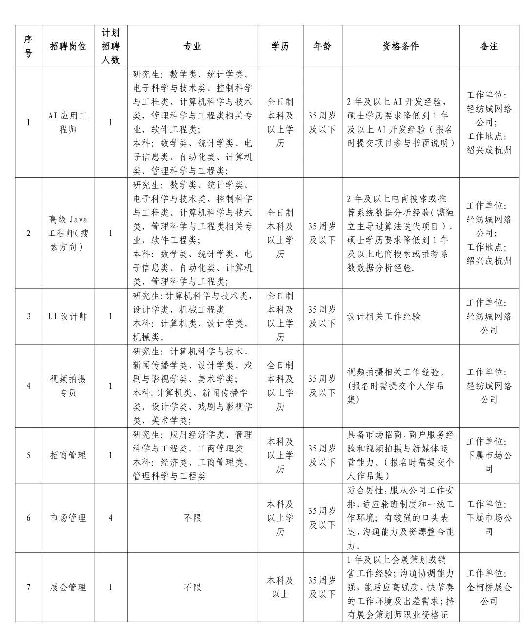 本招聘公告在轻纺城集团网“通知公告”栏目和海智汇绍兴人才网“招聘资讯”栏和柯桥日报上同步发布。
