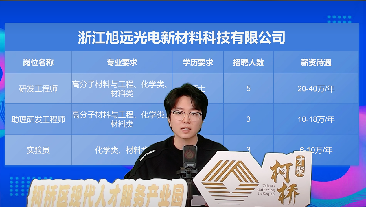 本场直播聚焦新能源、先进材料、半导体等重点新兴产业,集中推介了明豪新能源、旭远光电新材料、迅实科技等柯桥16家优质企业,提供研发、技术、运营、销售、生产操作等多类型岗位193个,岗位覆盖面广、专业适配性强。直播围绕岗位职责、专业要求、薪资福利等求职者关心的核心内容进行详细讲解,并实时回应弹幕咨询、在线解答求职疑问。